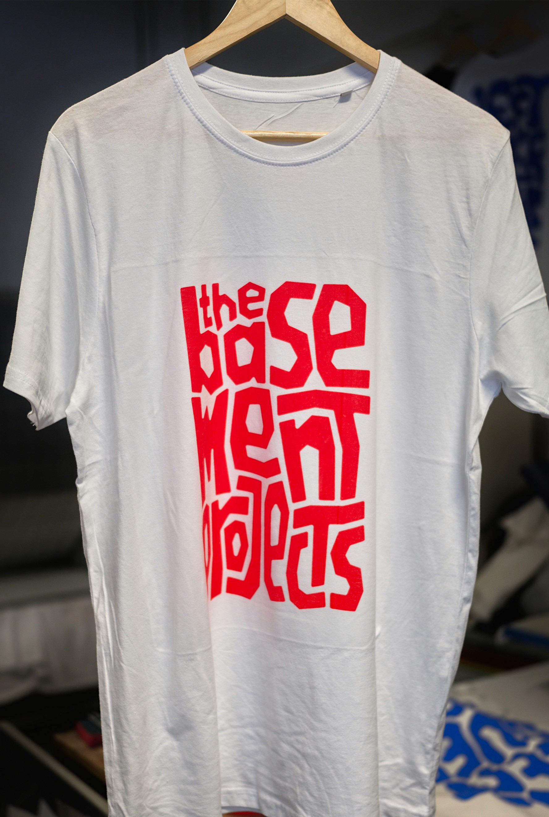 In a rehearsal space situated under a kindergarten in Aalborg, there are bubbles of people making all sorts of noise – the loud kind, the quiet kind, the experimenting kind, the challenging kind, and the pleasant kind. It's a melting pot of musical creativity, and sometimes the noises merge into new noise. Such is the story of The Basement Projects. A noise and a voice that started as a one-man-ensemble consisting of Linus Holst, and eventually grew into a trio of bombastic beats and fuzzy flavours when Linus was joined by Jonas and Mikkel. I was asked to help with the creation of some press material, which quickly grew into designing a typographic logo that could also be used for merch. Which i quickly ended up screen printing on tshirts, red on white.
